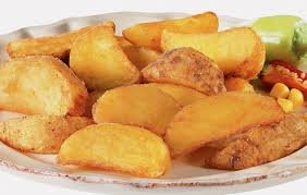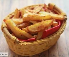 Patatas bravas con salsa de tomate, pimiento verde, cebolla, champiñones y quesoal horno